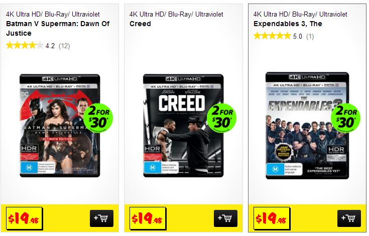 JB Hi-Fi 超清4K Ultra HD 蓝光 - 2部$30