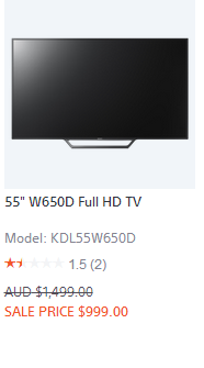 索尼55" W650D高清电视 原价AUD $1,499 活动价只要$999