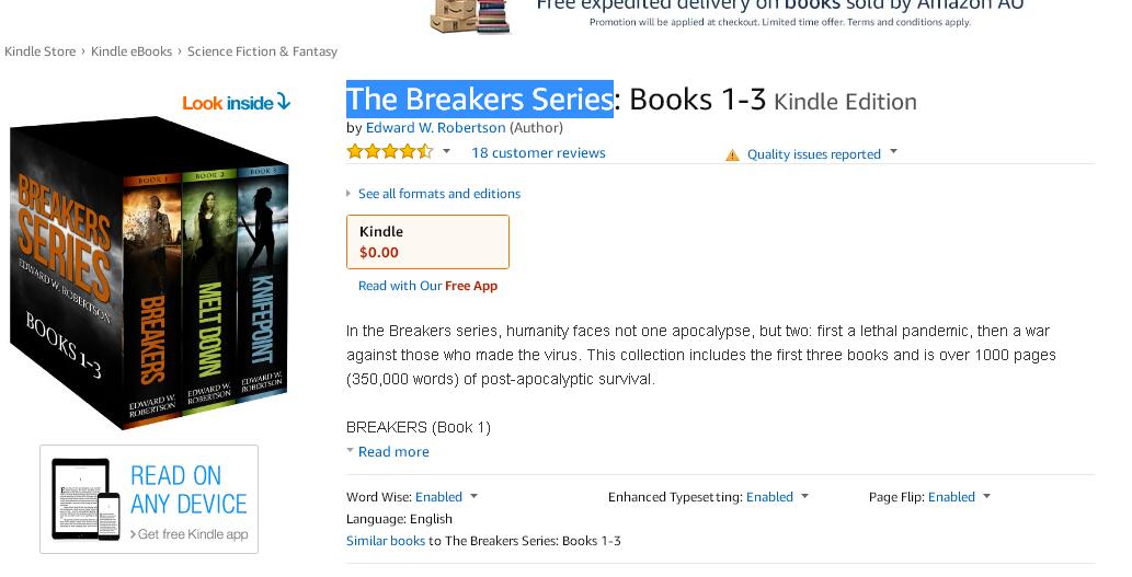 Amazon AU, UK, US 电子书免费The Breakers 1-3部 原价 ...