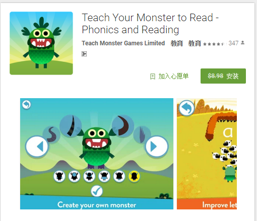 Google Play 免费小应用-Teach Your Monster to Read - Phonics and Reading