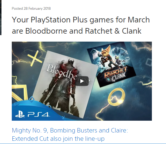 https://blog.eu.playstation.com/2018/02/28/your-ps-plus-games-for-march-are-bloodborne-and-ratchet-clank/