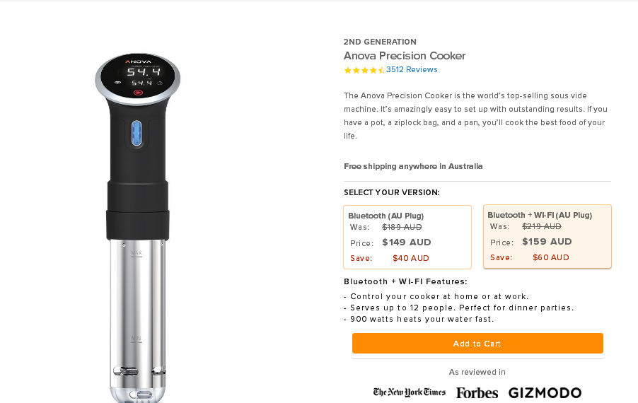 Anova Precision真空烹饪器 蓝牙版$149| 蓝牙+Wifi $159 ...