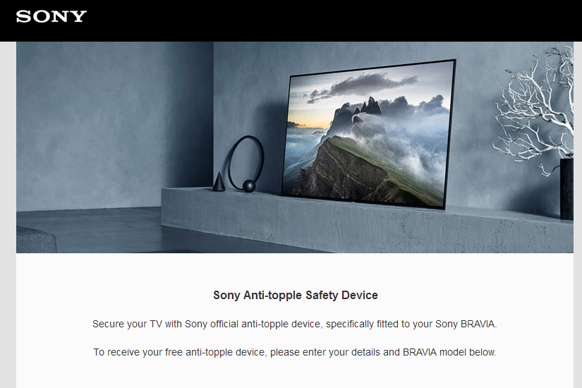 购买过索尼BRAVIA电视的 现在可免费申领配套的Anti-Topple Device