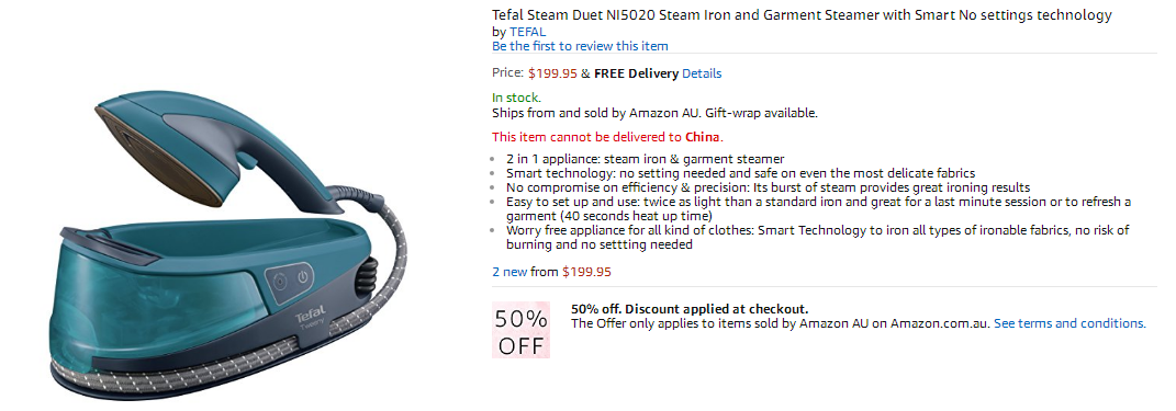 Tefal NI5020挂烫平烫二合一熨斗到手不到$80 比五折还低 @Amazon