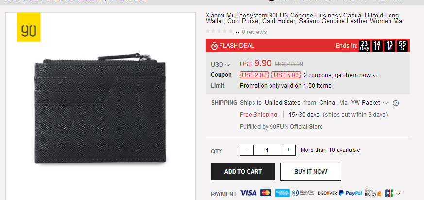 小米90FUN商务钱包 包邮$9.90 US (~$13.21 AU) @ Joybuy ...