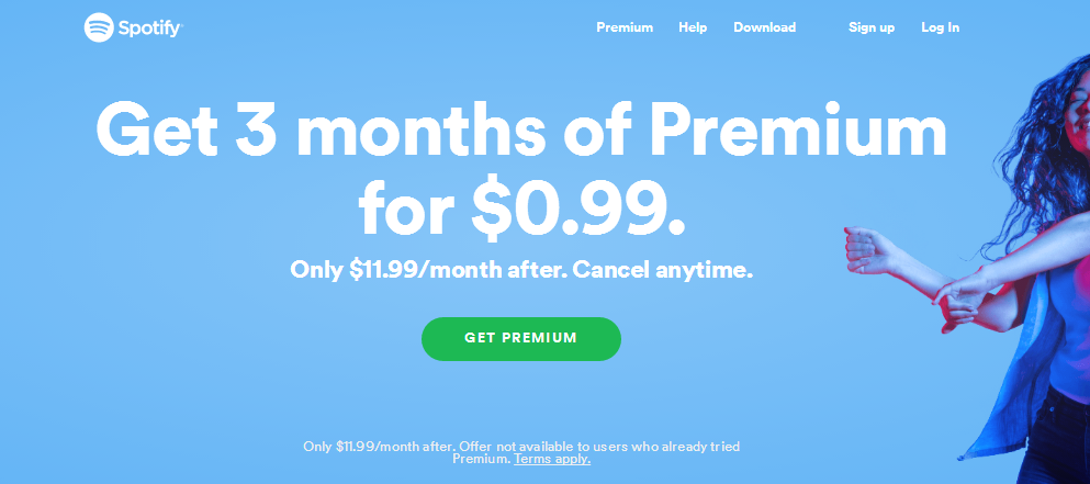 新用户只需0.99刀 试用三个月Spotify Premium ...