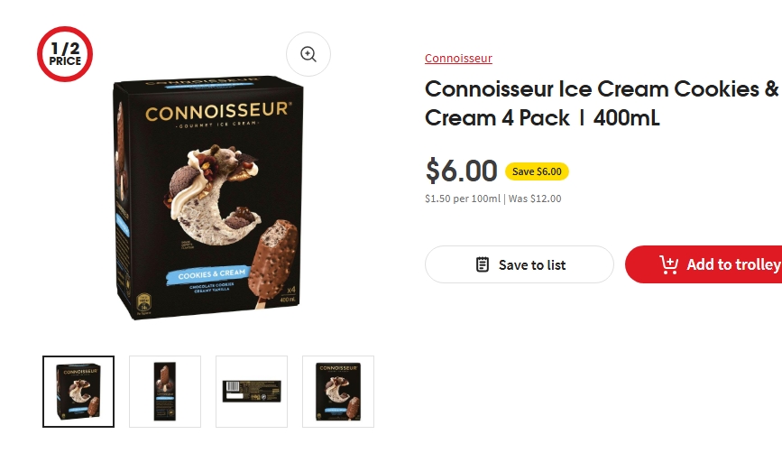 Connoisseur 月亮冰淇淋半价!现价$6.0!@ Coles ...