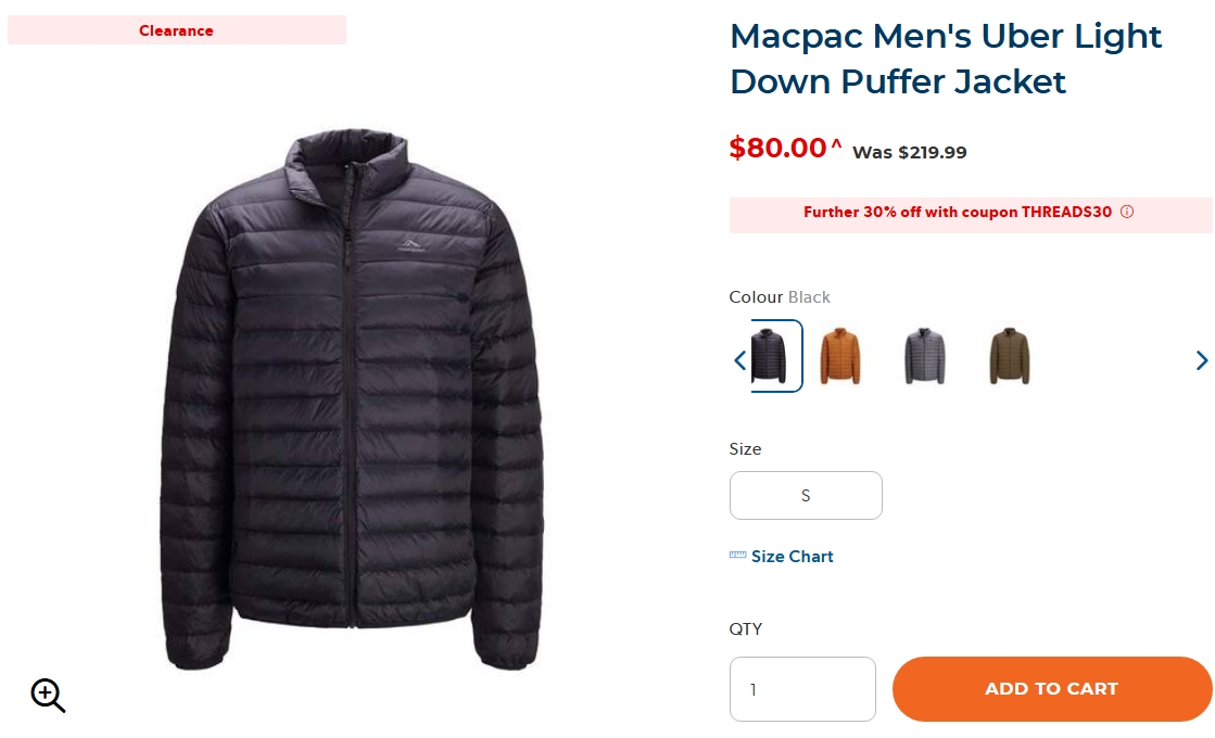 Macpac男士轻便羽绒服清仓促销!折上折活动,原价$219.9 ...