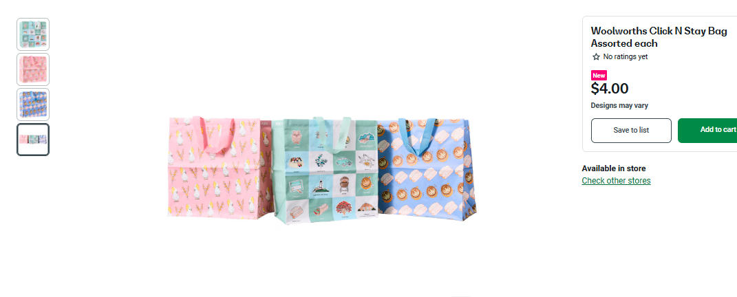Woolworths新品特色Click N Stay购物袋,$4一个!