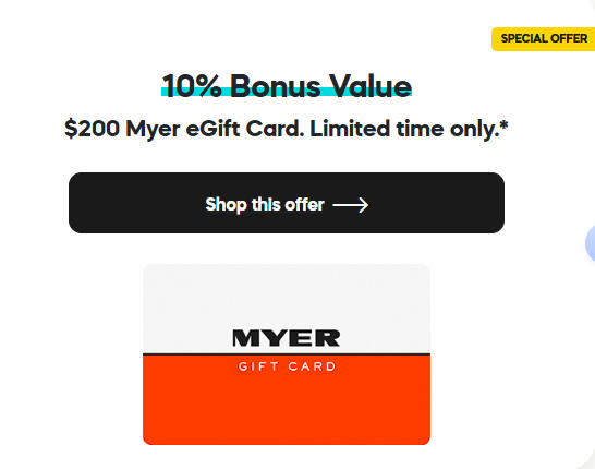 $200 Myer 电子礼品卡:赠送10%面值!@ giftcards