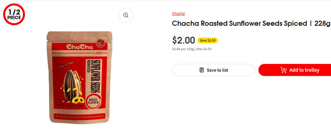 恰恰瓜子特价!55%折扣!现价$2.00! @ Coles