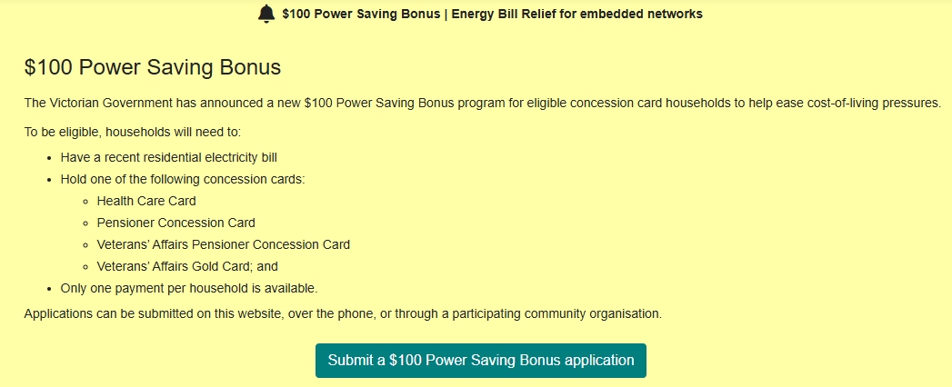 维多利亚州政府宣布了一项新的100澳元的节电奖励计划,以帮助符合条件的特许卡家庭减轻生活成本压力。
