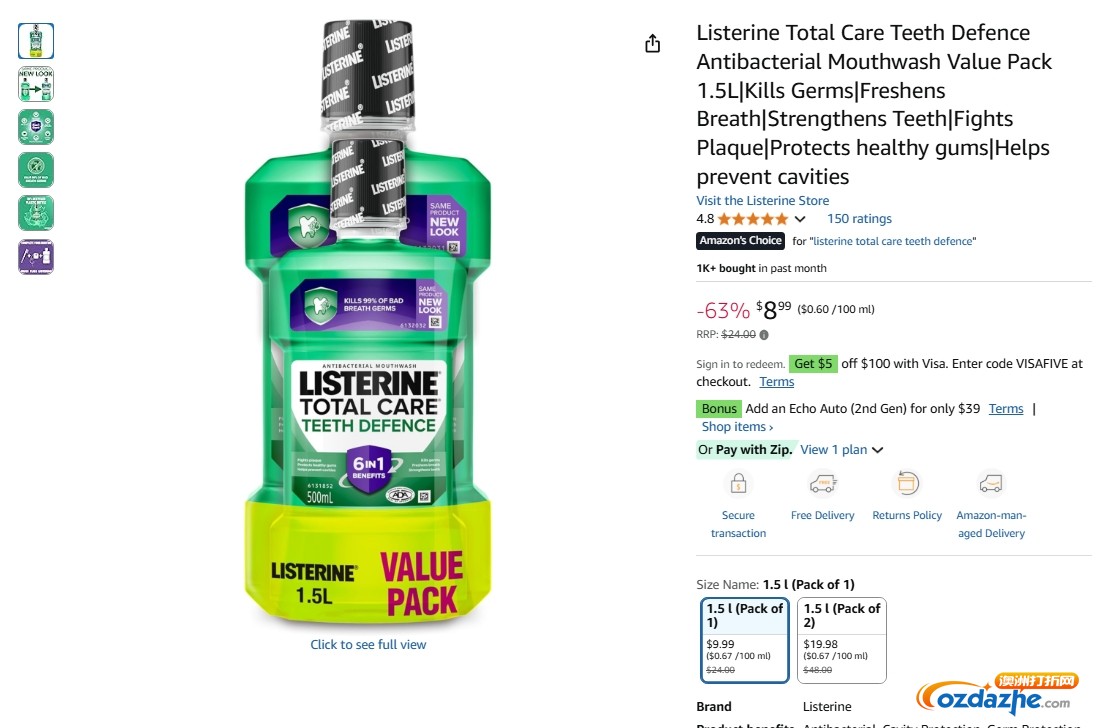 Listerine全护理牙齿防护抗菌漱口水63%折扣!原价$24, ...