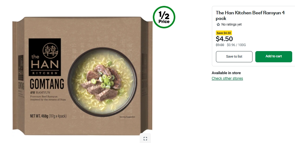 The Han Kitchen牛肉味韩拉面半价!现价$4.5!@ Woolworths