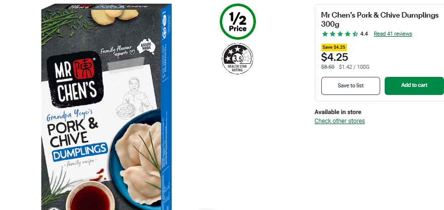 Mr Chen's 猪肉韭菜饺子半价!现价$4.25!@ Woolworths ...