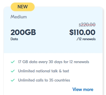 Prepaid SIM Only plans 30天,12个月套餐半价!200GB流量,现价$110!@ Lyca