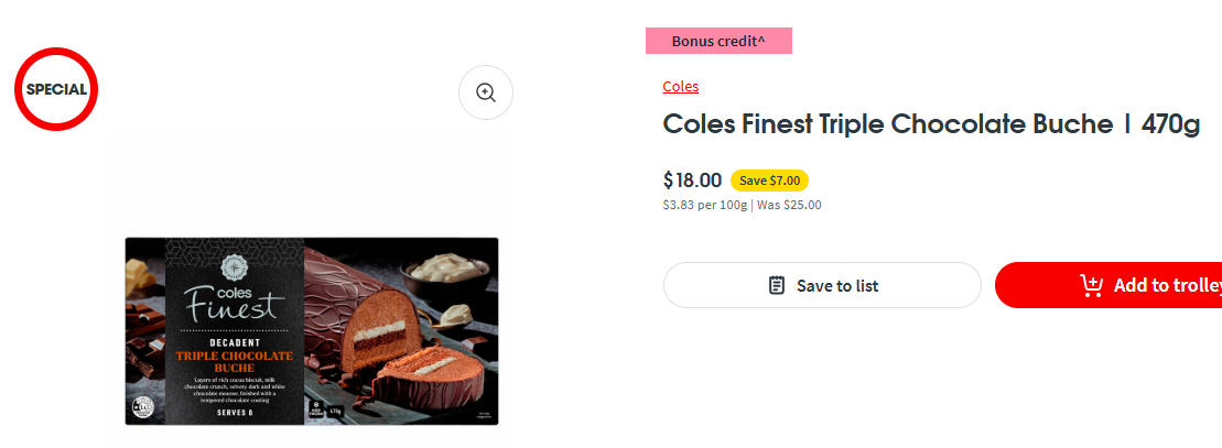 Coles Finest 三层巧克力蛋糕特价!28%折扣,现价$18.00!
