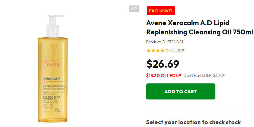 雅漾干爽补充脂质洁面油特价!750毫升,现价$26.69,省$13.30! @ Chemist Warehouse