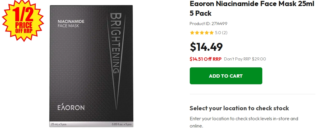 https://www.chemistwarehouse.com.au/buy/123885/eaoron-niacinamide-face-mask-25ml-5-pack
