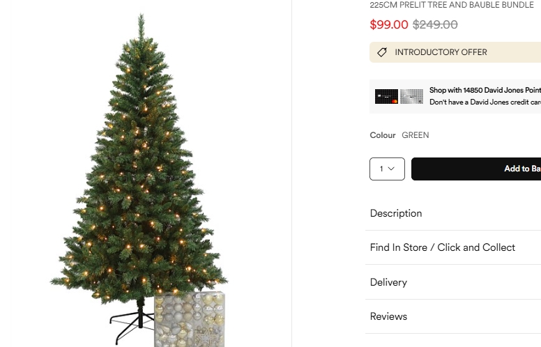 David Jones Collection 225cm Prelit Tree and Bauble Bundle圣诞树和圣诞球 特价!