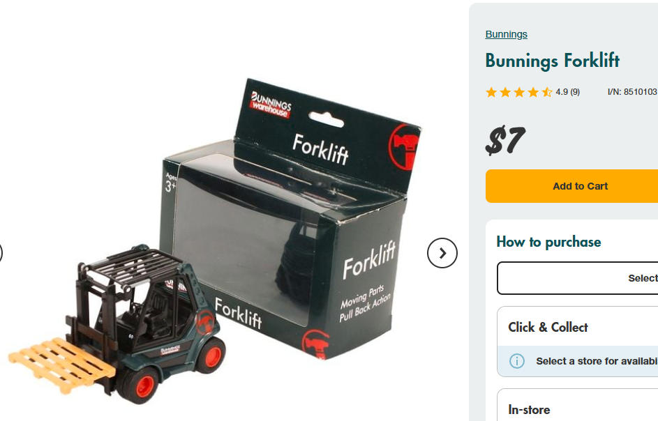 好物推荐:具有收藏价值的叉车,$7.0!@ Bunnings