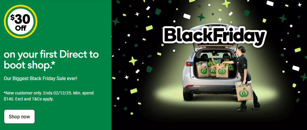 Woolworths 黑五活动:第一次使用Direct to Boost购物,可减$30!