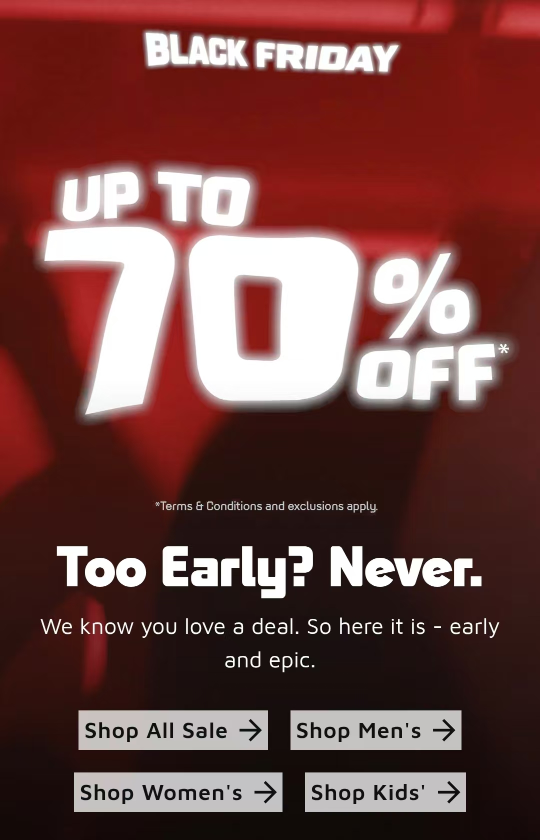 Footlocker Black Friday黑五促销:衣服、运动鞋等最高70%折扣!