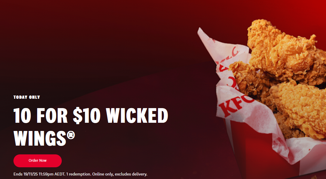 优惠内容:10只 Wicked Wings 仅售 10澳元