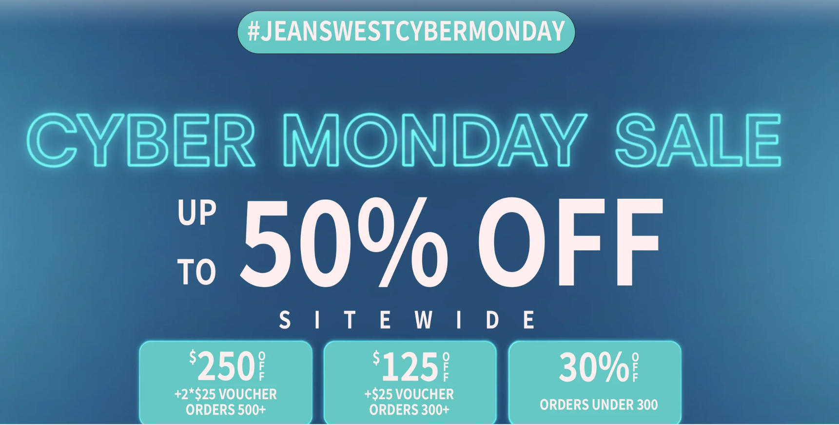 Jeans West Cyber Monday促销:全场最高50%折扣!