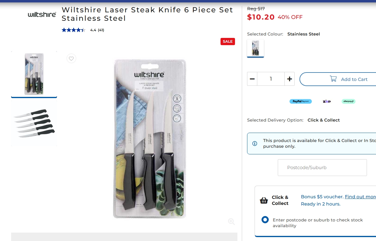 Wiltshire不锈钢牛排刀具6件套,原价$17,折后$5.2!@ Spotlight
