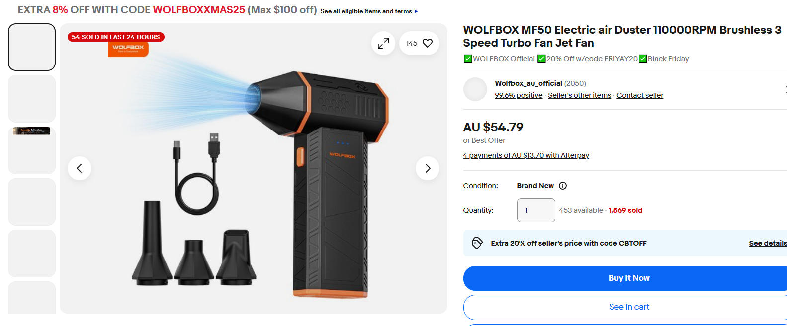 使用WOLFBOXXMAS25 优惠码,8%折扣,折后$50.4!