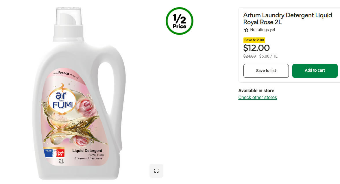 Arfum皇家玫瑰洗衣液半价!2升,现价$12.0!@ Woolworth ...