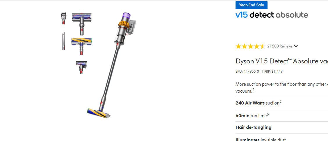 Dyson V15 Detect™ Absolute vacuum 戴森真空吸尘器 年末促销!