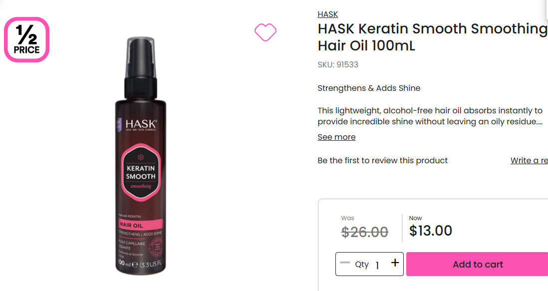 HASK护发精油半价!100毫升,现价$13!@ Priceline ...