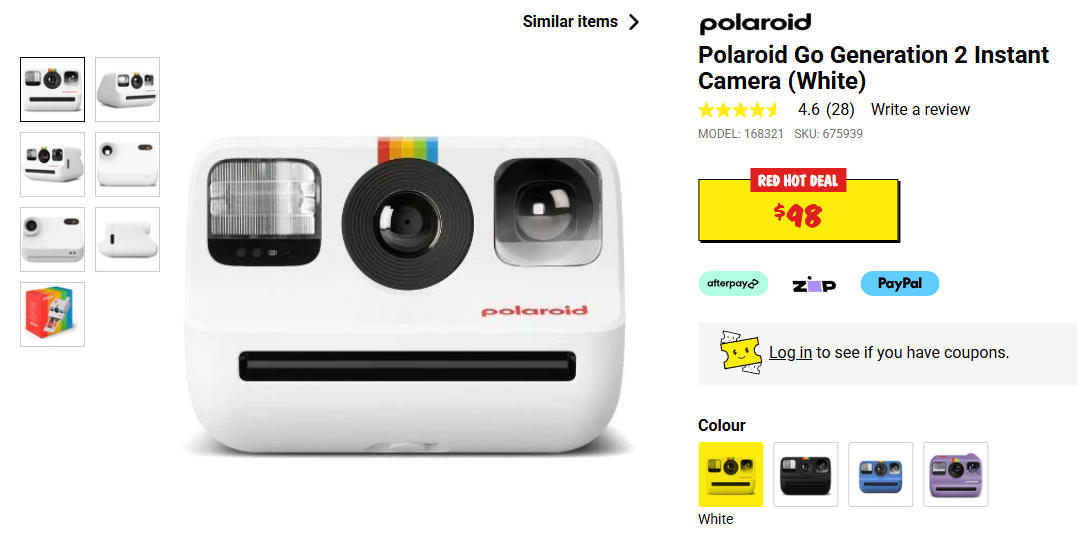 Polaroid宝丽来Go二代即时相机特价!现价$98!@ JB Hi-Fi