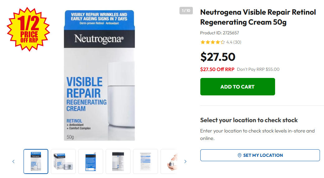 Neutrogena露得清视黄醇抗老再生面霜半价!现价$27.50!@ Chemist Warehouse