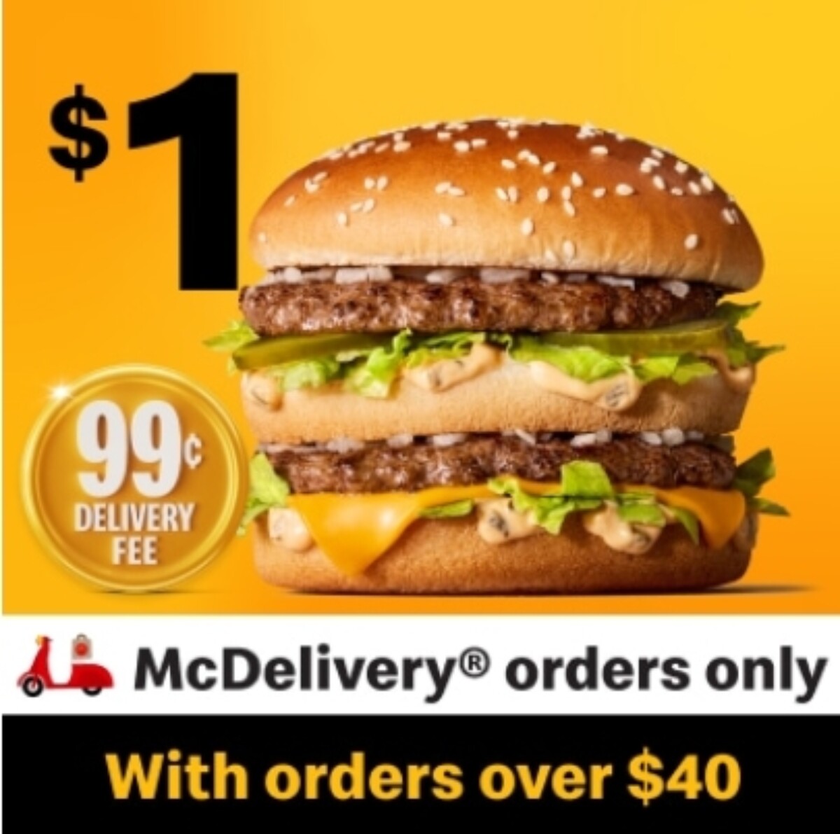 McDelivery平台消费满$40,可以$1购买一个巨无霸汉堡!!