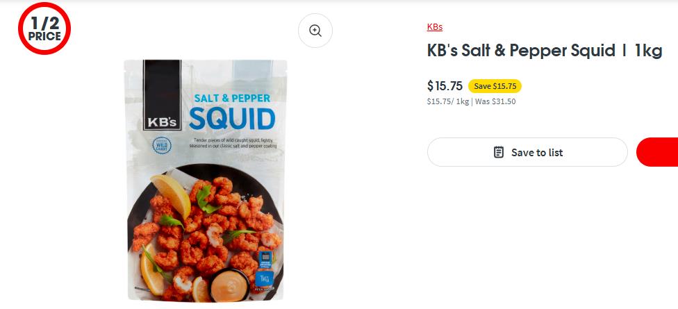KB's 盐椒味鱿鱼半价!现价$15.75!@ Coles