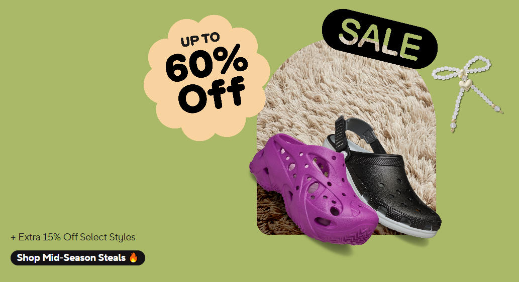 Crocs 官网促销:最高60%折扣!