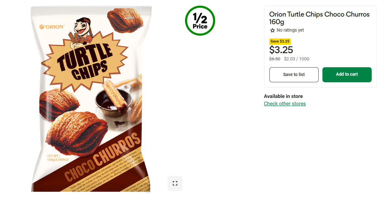 Orion Turtle Chips 乌龟薯片半价!160克,现价$3.25!@ Woolworths