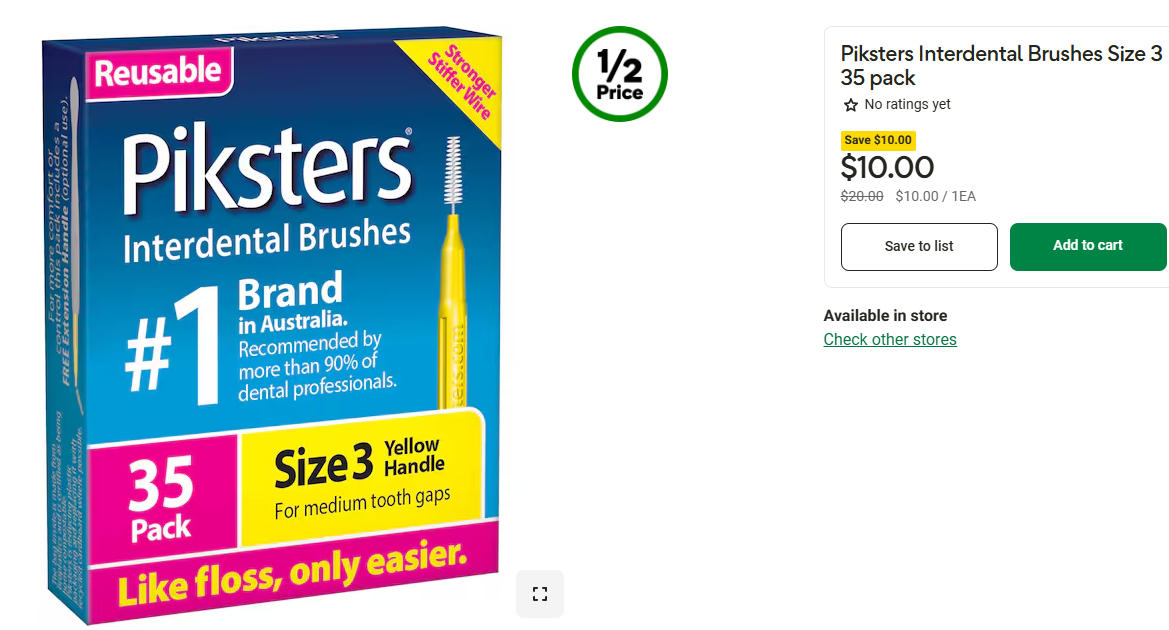 Piksters牙缝刷半价!Size 3(35个),现价$10!@ Woolw ...