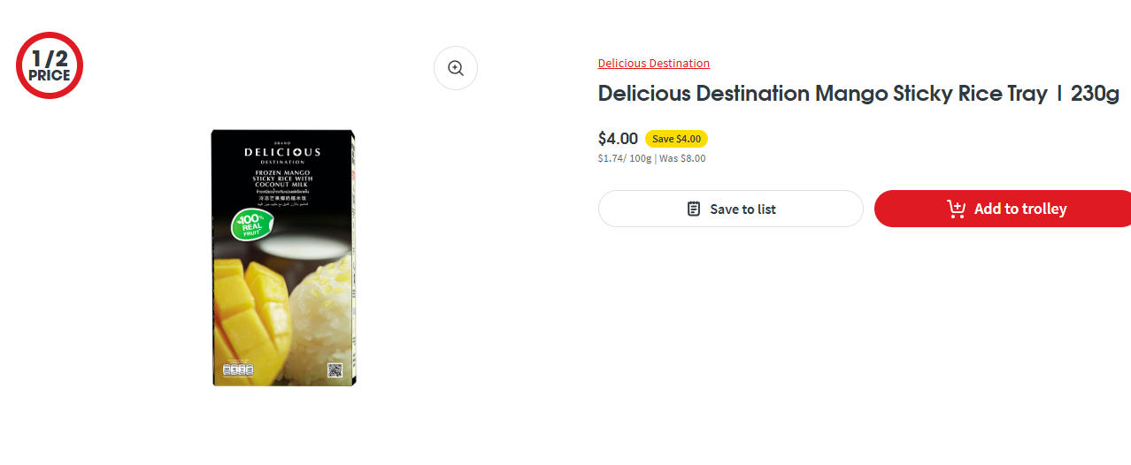 泰国进口芒果糯米饭半价!230g,现价$4.00!@ Coles ...