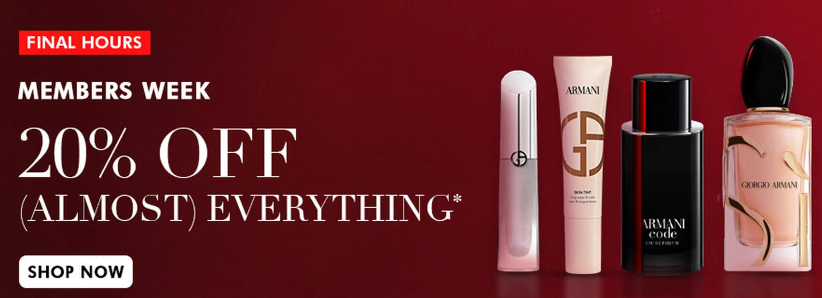 Giorgio Armani美妆会员周Final Sale终极销售:全场20%折扣!