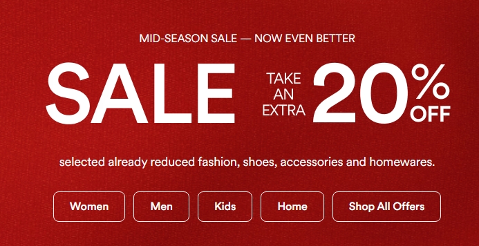 David Jones季中促销:衣服、鞋子、配饰、家居品等20%折上折!