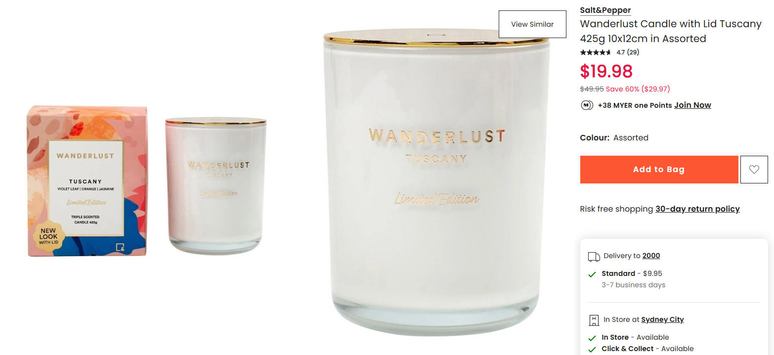 Salt&Pepper带盖子的香薰蜡烛60%折扣!现价$19.98!@ Myer