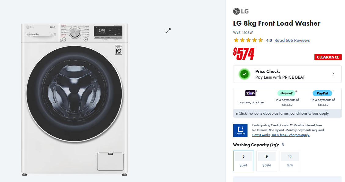 LG 8kg滚筒洗衣机清仓促销!现价$564!@ The Good Guys