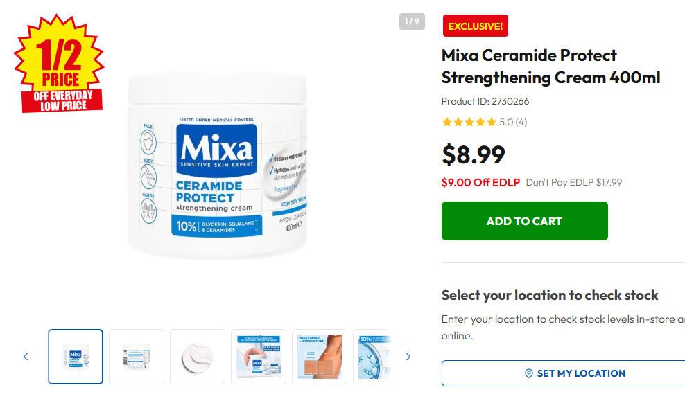 Mixa神经酰胺防护修护霜半价!400毫升,现价$8.99!@ Chemist Warehouse
