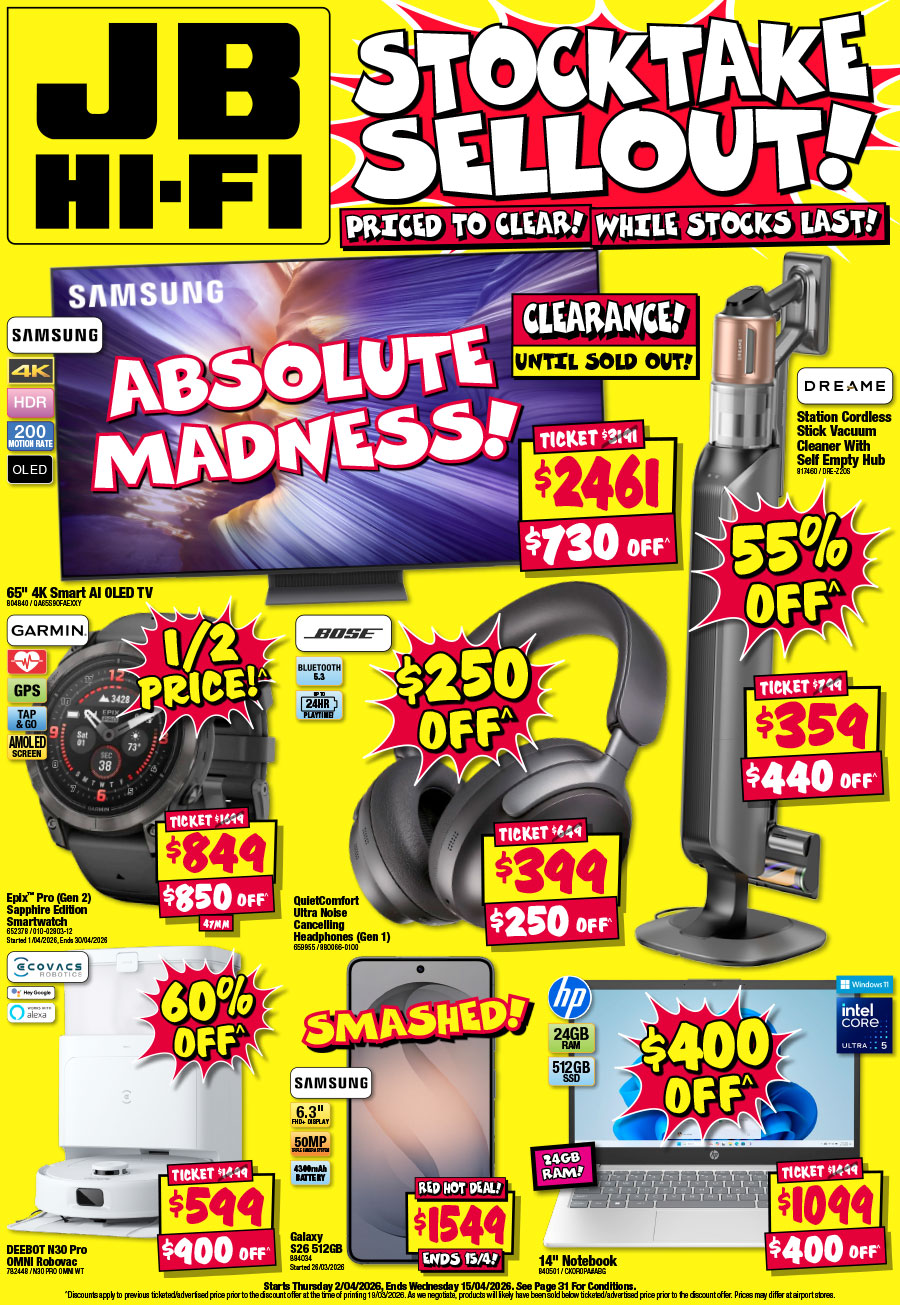 JB Hi-Fi最新打折图表!4月2日-4月15日!