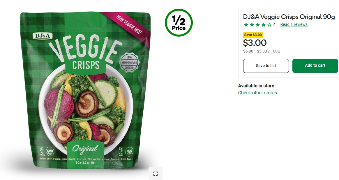 DJ&A原味蔬菜干半价!现价$3.00!@ Woolworths ...