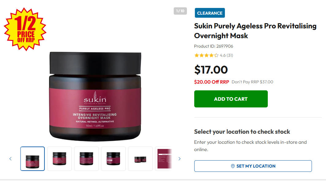 Sukin 永葆青春焕颜夜间面膜特价!现价$17.00,省$20.00!@ Chemist Warehouse